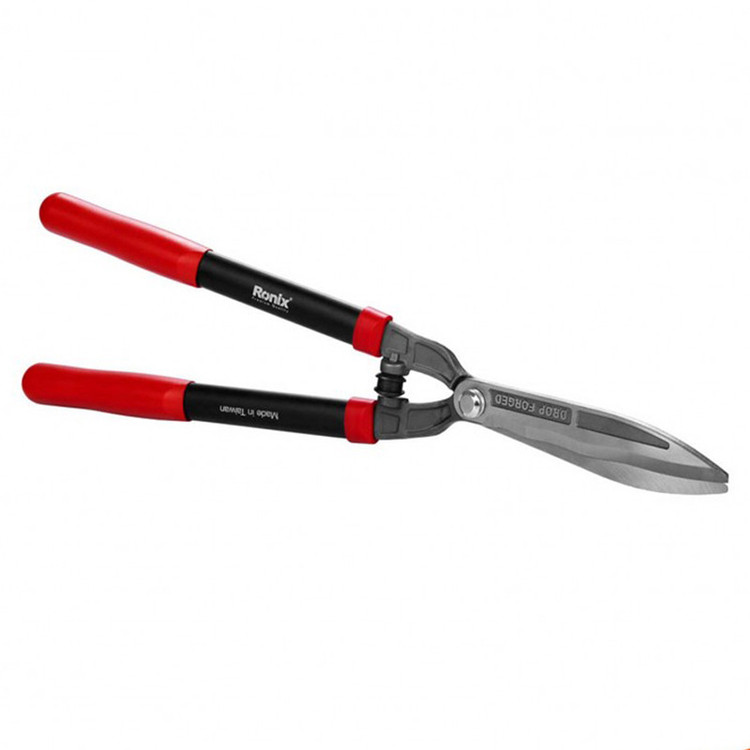 قیچی شمشاد زن مدل rh-3110 رونیکس، یک قیچی هرس باغبانی 60.5 سانتی متری با تیغههای فولادی بسیار تیز و برندهی کنگره دار به طول 22 سانتی متر است. این ابزار باغبانی، به روش دراپ فورج تولید شده و به گونهای طراحی و تولید شده تا برای بریدن شمشادها و حتی بوتههای کمپشت مناسب باشد. این قیچی باغبانی رونیکس، مجهز به دستهی ارگونومیک مخصوص از جنس ABS یا پی وی سی سافت است که با مقاومت بالای خود، برای جلوگیری از خستگی دست شما در فعالیتهای دراز مدت بسیار مناسب است. این دسته مجهز به ضربه گیر لاستیکی مقاوم است که از فرسایش تیغه در کارایی های طولانی مدت جلوگیری خواهد کرد.