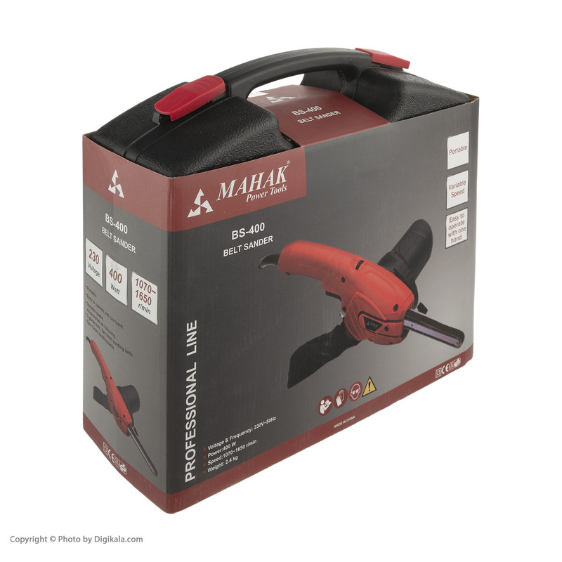 دستگاه سنباده زن محک مدل BS-400 دارای موتوری با قدرت 400 وات است. سرعت این دستگاه محک در حالت اول 1070و در حالت دوم 1650 دور در دقیقه می باشد. وزن سنباده تسمهای محک برابر با 2.4 کیلوگرم بوده و ابعاد آن نیز 330x116x240 میلیمتر است. به طور کل سنباده کاری عملیاتی برای پرداخت و صاف کردن سطوح چوبی است. در صنعت نجاری قبل از اعمال رنگ باید سطح کار را با سنباده پرداخت نمایند تا آماده رنگ کاری شود. در واقع سنباده کاری عملیات بسیار مهمی در انواع کارهای چوبی است. محل و کارگاهی که قرار است سنباده کاری در آن انجام شود، باید به سیستم تهویه و مکنده مجهز باشد تا گرد و غبار از محیط خارج شود. همچنین کاربر برای جلوگیری از آسیب رسیدن به دست و انگشتان باید از دستکش مخصوص استفاده نماید. استفاده از ماسک تنفسی نیز لازم است زیرا گرد و غبار به ریه آسیب می رساند. کاربر باید دقت کند هنگام کار سنباده کاری، قطعات چوبی را به کمک گیره محکم نماید. اطمینان پیدا کردن از کابل برق و اتصالات برقی نیز الزامی است.