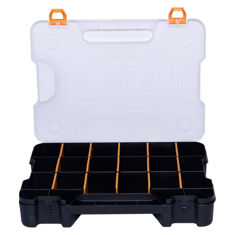 سایر توضیحات : متشکل از قفسه هایی به عمق 6.5 سانتیمتر/ مجهز به درپوش محکم و شفاف/ دارای قابلیت تغییر اندازه‌ی قفسه ها با جابجابی جداکننده ها