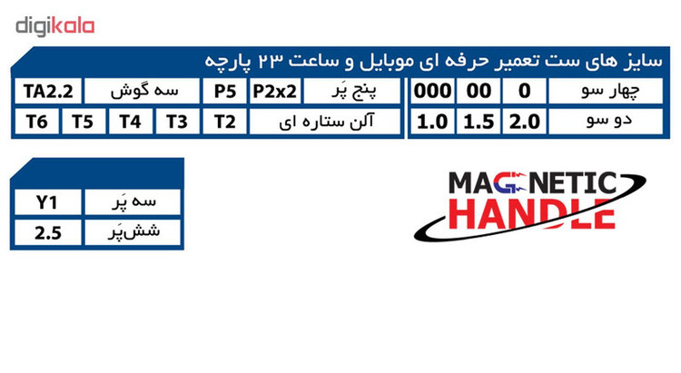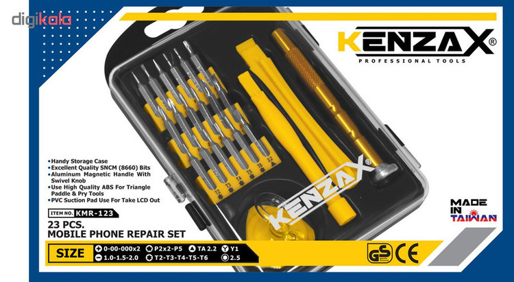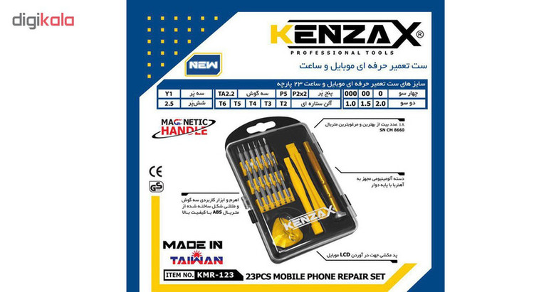 با توجه به فراگیر شدن گوشی های همراه و افزایش قیمت چند برابری این دسته از کالا ها بسیاری از افراد قدرت خرید تلفن همراه جدید را ندارند و بازار تعمیرات این دسته از کالاها بسیار فعال و پر رونق گشته است. شرکت کنزاکس در راستای اهداف تامین ابزار صنعتی بازار ایران نیم نگاهی به ابزار مورد نیاز تعمیرکاران و فعالان این صنعت تعمیرات موبایل داشته است. بنابر این مجموعه ای کاربردی و با ارزش از ابزار را در مجموعه ای 23 پارچه از بهترین تولید کنندگان کشور تایوان با قابلیت مگنتیک (آهنربایی) تهیه و به بازار عرضه داشته است. این مجموعه با شماره مدل (KMR-123) راهی بازار نموده است . این ست شامل 23 قطعه است که از اجزای آن میتوان به یک عدد دسته پیچگوشتی کوچک آلومینیومی سبک مجهز به آهنربا با پایه دوار که روی بخشی از سطح آن جهت عدم لغزش دست مشبک گردیده است و براحتی در دست شما قرار میگیرد. دو عدد اهرم نوک تیز سه گوش و مپلپی شکل از جنس ABS با کیفیت بالا جهت باز کردن شکاف های مختلف و باز نمودن به همراه یک عدد مکنده پلاستیکی شفاف به همراه قلاب نگهدانده بمنظور جدا سازی صفحه نمایش از بدنه اصلی همچنین 18 عدد بیت پیچگوشتی از بهترین و مرغوب ترین SN CM 8660 که شما را در باز کردن انواع اقسام پیچهای عجیب و غریب و معمولی یاری خواهند کرد. 18 سری ذکر شده شامل: 4 عدد سر پیچگوشتی چهارسو، 3 عدد سر پیچگوشتی دوسو، 5 عدد سری ستارهای در سایز های T3 , T2 , T6 , T5 , T4 , ، 3 عدد با گل پنج پر ، یک عدد سری دلتا (مثلثی)، یک عدد سری هگزا و دارای یک عدد سری سه سو است. مجموعه فوق برای افرادی که با پیچهای کوچک سروکار دارند بسیار مناسب و کارآمد است. باید در نظر داشت که کیفیت این مجموعه نسبت به قیمتی که برای آن در نظر گرفته شده قابل قبول است اما اگر به دنبال کیفیتی ایده آل هستید شاید بد نباشد بیشتر جستجو کنید.