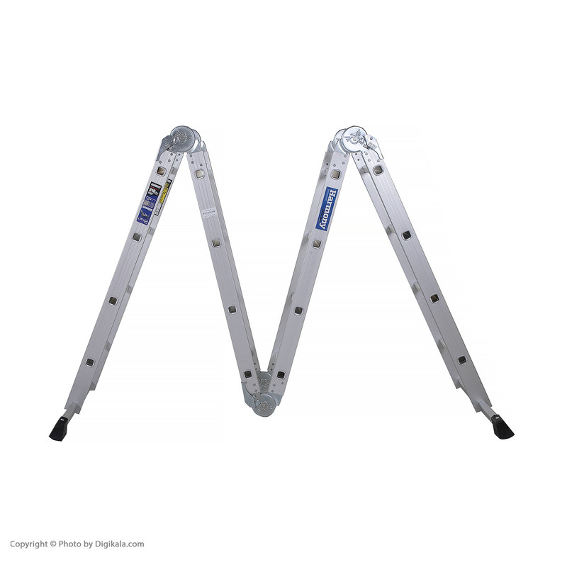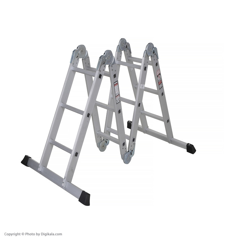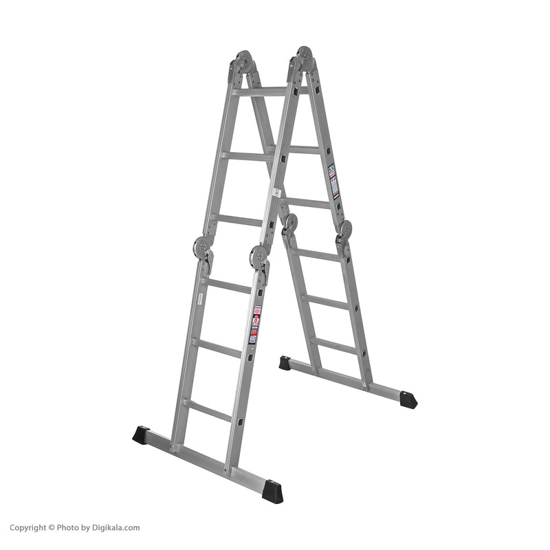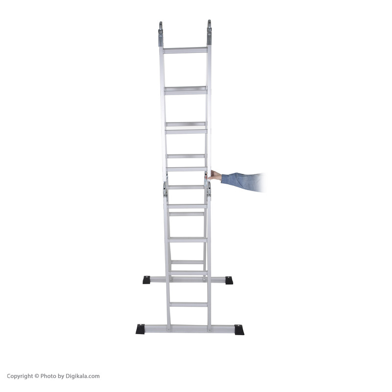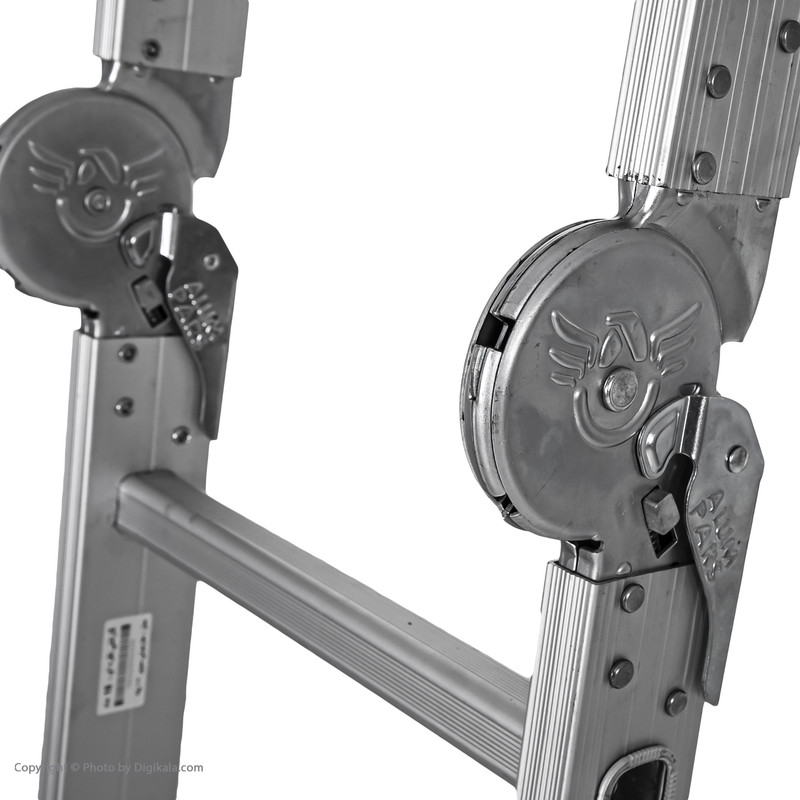 اقلام همراه : - نردبان مفصلی - چند منظوره - امکان استفاده به صورت هشتی دو طرفه، خرپا، تمام باز دیواری - امکان تاشدن و کم‌جا - دارای پایه‌ تعادل - دارای قفل - دارای گواهینامه استاندارد ایران - ارتفاع در حالت باز شده: 485 سانتی‌متر