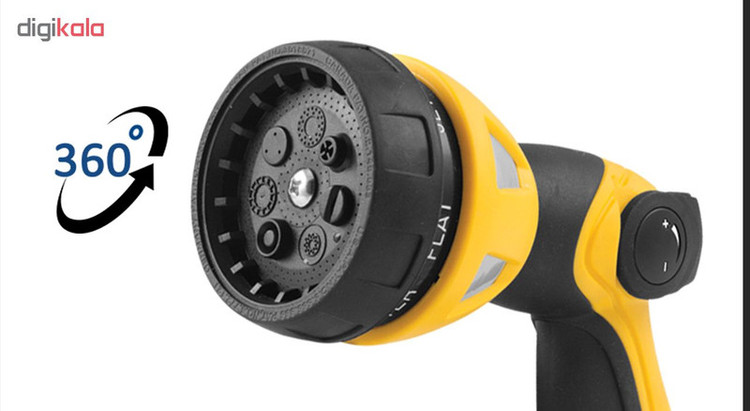 تنظیم چرخشی نازل 360 درجه دو طرفه شیر ماشه ای روکش تی پی آر مقومت بالا در برابر زنگزدگی قابل استفاده با اتصال به شلنگ آب و آبیاری و شستشوی محیطهای مختلف قابلیت تنظیم نوع پاشش در هفت حالت مختلف