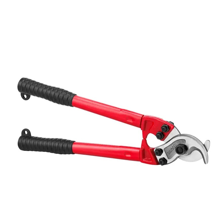 قیچی کابل بر سایز 14 اینچ - 350 میلی متر، قابلیت برش کابل مسی 70 میلیمتری مربع و کابل آلومینیومی 100 میلیمتر مربع، ظرفیت برش حداکثر 350 میلی متر مربع. بدنه از جنس فولاد آلیاژی حرارت دیده (Q235)، دسته با پوشش لاستیکی و تیغه از فولاد کربنی آلیاژی (65MN).