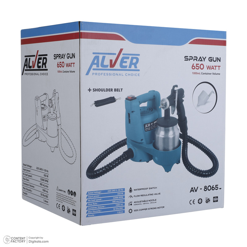 کلید ضد اب نازل تنطیم شونده (افقی عمودی دایره ای) تنظیم میزان جریان توان 650 وات نرخ جریان 900 میلی لیتر در دقیقه
