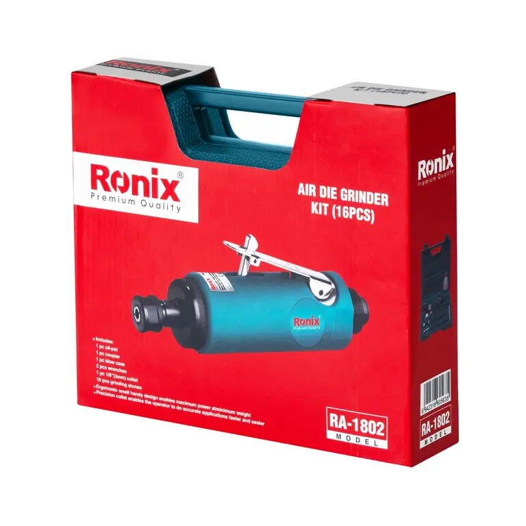 در این بین کیت فرز انگشتی بادی محبوبیت بیشتری را میان مصرفکنندگان دارد؛ چراکه با خرید آن میتوانید از سریهای مختلف قرارگرفته روی آن برای انجام طیف گستردهای از کارها استفاده کنید. مدل RA-1802، مجموعه کاملی از فرز انگشتی بادی رونیکس همراه با متعلقات کاربردی و متنوع است که در داخل یک کیف BMC مقاوم قرار میگیرند.