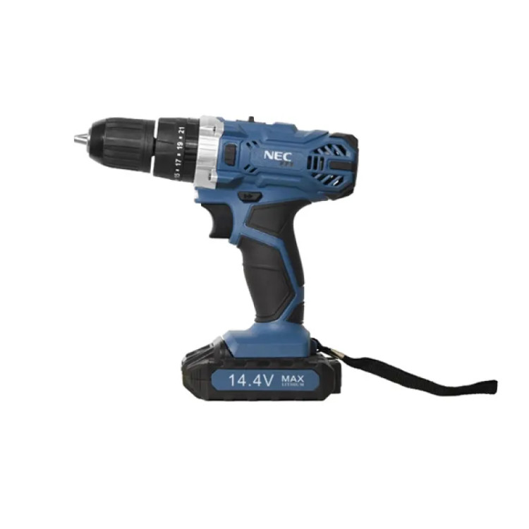 دریل شارژی 14.4 ولت چکشی NEC کد 1814 با کیف و دو باتری