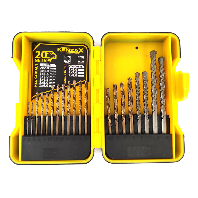 ست 20 عددی مته کنزاکس شامل 4 عدد مته الماسه مخصوص دیوار در سایزهای 6 و 7 و 8 است.مته دیوار سایز 8 به دلیل پر مصرف بودن آن در این ست 2 عدد تعبیه شده است.مته های فلز از نوع کبالت دار بوده و سایزهای آن به شرح زیر است. سایز 2 به تعداد 2 عدد سایز 3 به تعداد 3 عدد سایز 3.5 به تعداد 3 عدد سایز 4 به تعداد 4 عدد سایز 4.5 به تعداد 1 عدد سایز 5 به تعداد 2 عدد سایز 6 به تعداد 1 عدد