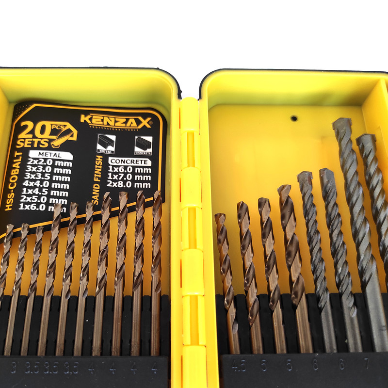 ست 20 عددی مته کنزاکس شامل 4 عدد مته الماسه مخصوص دیوار در سایزهای 6 و 7 و 8 است.مته دیوار سایز 8 به دلیل پر مصرف بودن آن در این ست 2 عدد تعبیه شده است.مته های فلز از نوع کبالت دار بوده و سایزهای آن به شرح زیر است. سایز 2 به تعداد 2 عدد سایز 3 به تعداد 3 عدد سایز 3.5 به تعداد 3 عدد سایز 4 به تعداد 4 عدد سایز 4.5 به تعداد 1 عدد سایز 5 به تعداد 2 عدد سایز 6 به تعداد 1 عدد