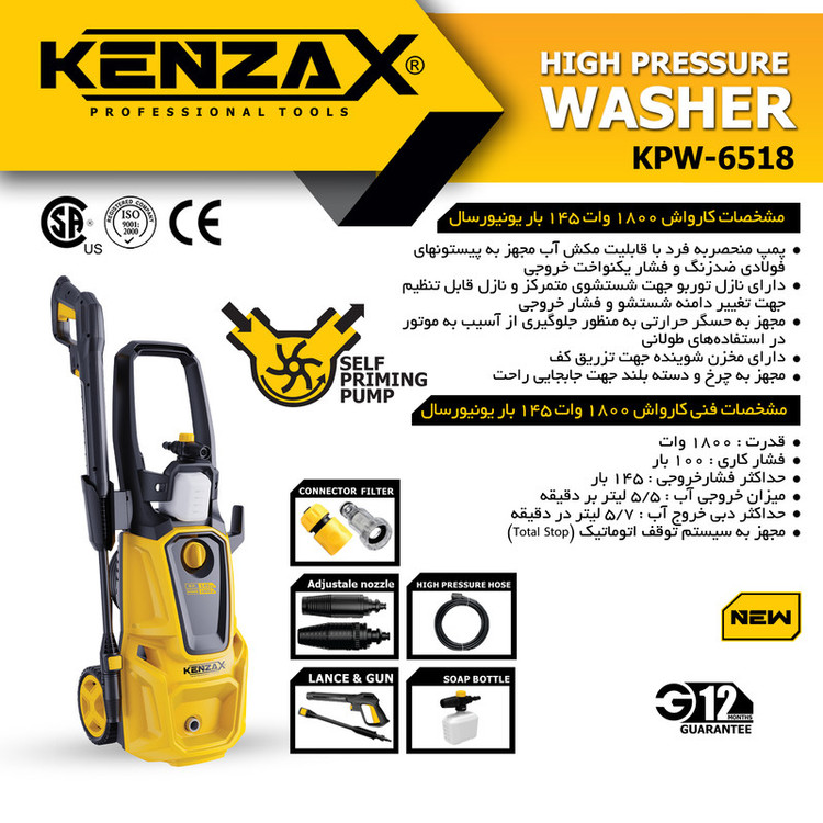 کارواش 145 بار یونیورسال خودمکش کنزاکس مدل KPW-6518