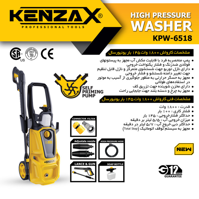کارواش 145 بار یونیورسال خودمکش کنزاکس مدل KPW-6518
