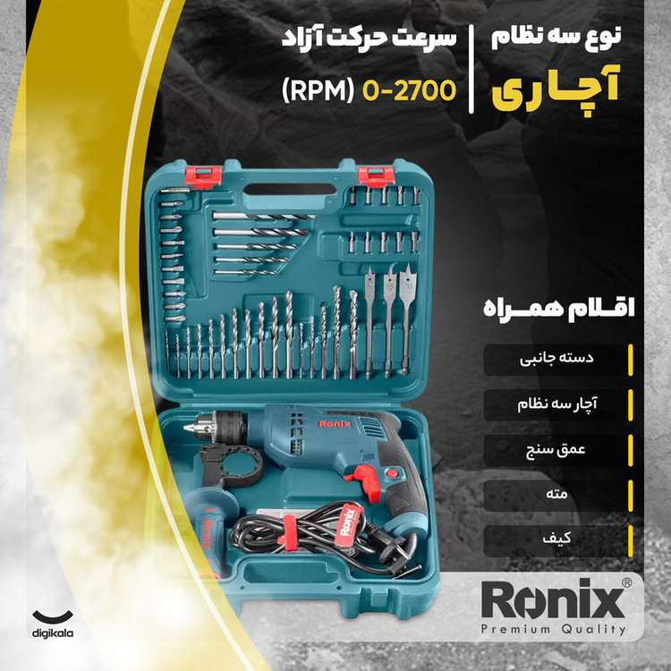 مجموعه 52 عددی دریل چکشی رونیکس مدل RS-0006