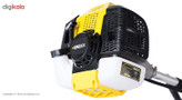 ابزاری را که مشاهده میکنید، داس موتوری (Kenzax) «کنزاکس» است که تحت عنوان مدل (KBC-152) در بازار موجود است. از این دستگاه برای بریدن چمن و سایر علفها و گیاهان استفاده میشود. این محصول دارای موتور دو زمانه با قدرت 1450 وات است و منبع تغذیه آن بنزین است که بهصورت ترکیبی از بنزین و روغن مورد استفاده قرار میگیرد. ظرفیت مخزن آن 1.2 لیتر و طول میله آن 63 سانتیمتر است. اقلام همراه این ابزار عبارتند از: دفترچه راهنما، مخزن سوخت، تیغه 3 لبه فلزی، آچار آلن، آچار پیچگوشتی مخصوص، قرقره و کمربند جهت آویزان کردن روی دوش و حمل و نقل آسان. این محصول دارای بدنه خوشدست با طراحی ارگونومیک و عایق دوبل است. داس موتوری کنزاکس دارای سیستم استارت سریع جهت روشن شدن سریع و آسان دستگاه است و سرعت در حالت آزاد آن 3200 دور در دقیقه است. همچنین ضخامت برش تیغه این ابزار 320 میلیمتر است.