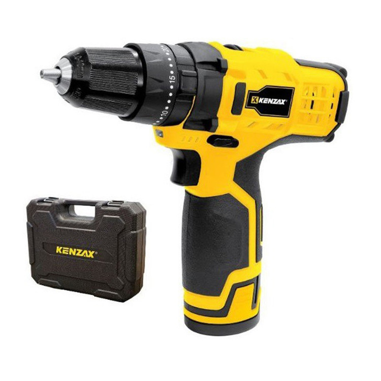 دریل پیچ گوشتی شارژی چکشی 12 ولت کنزاکس با باتری لیتیوم یون ولتاژ 12 ولت با ظرفیت معادل 2 آمپر ساعت به بازار عرضه می شود . این دریل پیچ گوشتی شارژی چکشی 12 ولت دو سرعته است که در دور اول با سرعت 0 تا 350 و دور دوم با سرعت 0 تا 1300 دور در دقیقه می چرخد . همچنین دریل پیچ گوشتی شارژی چکشی 12 ولت کنزاکس امکان ایجاد 0 تا 5250 ضربه در دور یک و 0 تا 19500 ضربه در دور دو را نیز دارد . حداکثر قطر سوراخکاری در این دریل پیچ گوشتی شارژی چکشی برای آهن ، 10 میلی متر ، بتن 8 میلی متر و چوب 18 میلی متر است . نوع سه نظام این دریل پیچ گوشتی شارژی ، اتومات فلزی است . دریل پیچ گوشتی شارژی چکشی 12 ولت کنزاکس مدل 8212 مجهز به 22+3 حالت تنظیمات گشتاور جهت کاهش صدمات به قطعه کار در حالت بستن پیچ می باشد