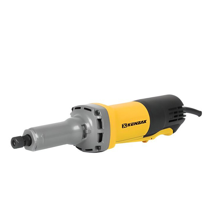 فرز گلو بلند 840 وات دیمردار کنزاکس مدل KDG-3584 یک فرز قدرتمند در سایز انگشتی است که برای انجام ظریفکاری با انواع متریالهای مختلف مناسب خواهد بود. ابتدا بیایید نگاهی به سایزبندی فرزها داشته باشیم؛ ترتیب فرزها از کوچک به بزرگ عبارتاند از سنگ فرز بزرگ (شامل فرز سنگبری و آهنگری)، فرز نجاری، مینی فرز دستهبلند، مینی فرز معمولی، فرز انگشتی (گلو بلند و گلو کوتاه) و فرز مینیاتوری. همانطور که میبینید فرز انگشتی جزو کوچکترین انواع فرز بوده و تنها فرز مینیاتوری از آن کوچکتر است.