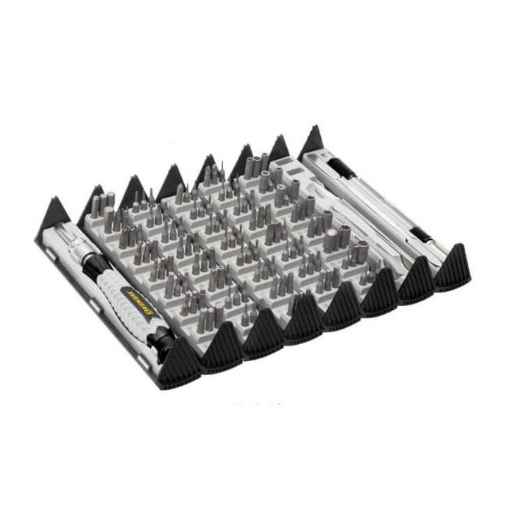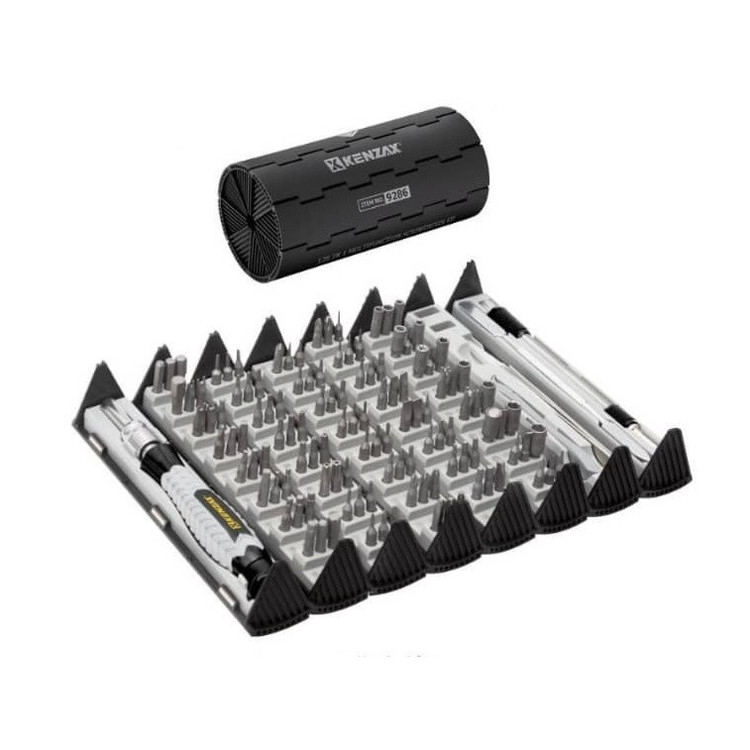 ست پیچ گوشتی موبایلی 126 پارچه کنزاکس مدل 9286، همراه با میله رابط منعطف و رابط کمکی و ابزارگیر آهنربایی، برای تعمیرات موبایل، کامپیوتر، ساعت، دستگاه های الکترونیکی و ... کاملا مناسب است. جنس سری های این مدل پیچ گوشتی از فولاد کروم وانادیوم بوده و سری پیچ گوشتی ها سختکاری شده تا 58 راکول C و همچنین جنس دسته ها از TPR + PP + TPR+ آلومینیوم است. ست پیچ گوشتی موبایلی کنزاکس مدل 9286، دارای 1 عدد رابط تلسکوپی پیچ گوشتی 100 میلی متر، 1 عدد دسته پیچ گوشتی 122 میلی متر، 1 عدد رابط منعطف 130 میلیمتر،1 عدد پنس استیل 115 میلی متر، 1 عدد اسپاتول پلاستیکی دو طرفه 83 میلی متر،1 عدد اسپاتول فلزی 140 میلی متر و 120 عدد سری پیچ گوشتی است و تمام نیازهای شما را پاسخگو خواهد بود. از دیگر ویژگی های مهم این ست باید به دسته پیچ گوشتی با قابلیت چرخش 360 درجه از قسمت سر، قابلیت مغناطیس کننده و غیر فعال کننده مغناطیس سری پیچ گوشتی و همینطور جعبه پلاستیکی تاشو اشاره کرد.