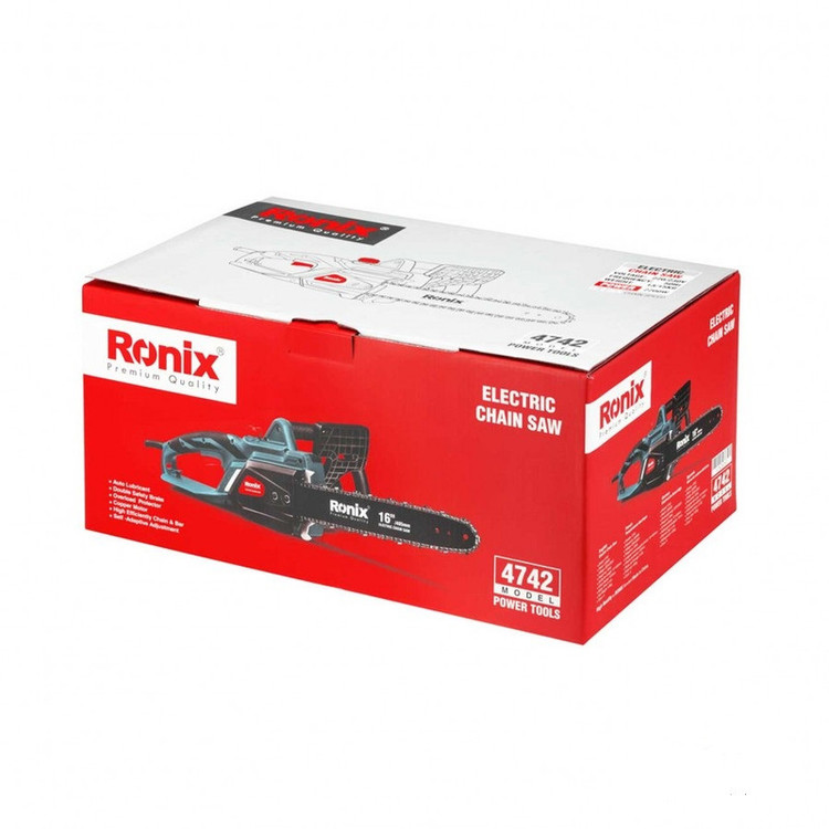 قدرت برش اره دستی یا تبر برای برش یا قطعه کردن تنه درخت، بسیار پایین است. در واقع بهتر است برای افزایش سرعت و دقت در برش و قطعه کردن چوب، از اره برقی استفاده شود. اره زنجیری برقی رونیکس مدل 4742 توسط برند رونیکس به بازار عرضه شده که میتوان گفت این برند در صنعت ابزار، یکی از برندهای معتبر و محبوب بوده و دارای تنوع بالایی در تولید و عرضهی ابزار فنی است. اره زنجیری برقی رونیکس مدل 4742 دارای دسته محافظ بوده که کنترل را برای برش بیشتر کرده و همچنین سیستم قطع کن و سیستم ترمز اضطراری نیز از موتور و سایر شرایط بحرانی که ممکن است پیش آید، محافظت خواهد کرد. ایمنی اره زنجیری به علت دستگاه با قدرت بالا از نکاتی است که باید حتما رعایت شود. این اره طول ریلی معادل 40 سانتیمتر دارد و سرعت حرکت آن برای برش تنه های بزرگ درختان مناسب خواهد بود.