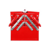 جعبه ابزار فلزی 3 طبقه 40 سانتی متری رونیکس به طور کامل از ورق فولاد ضد زنگ و مقاوم تولید شده است و اتصالات آن که به صورت پین شده هستند، در تمام قسمت های جعبه ابزار، به صورت با کیفیت و مرغوب ایجاد شده اند تا شما با خیال راحت بتوانید ابزارهای کوچک و متوسط خود از جمله انواع پیچ و مهره و آچار و انبر و انواع ابزار دستی مختلف را در درون آن جایگذاری کنید و آن ها را در خانه نگه دارید و یا به محل کار و فعالیت خود ببرید. دستهی فلزی مقاوم این جعبه ابزار رونیکس نیز که با روکش ABS پوشانده شده است، باعث میشود تا در هنگام حمل و نقل ابزارها در داخل این جعبه ابزار با راحتی زیادی مواجه شوید و از بسیاری دشواریهای حمل جعبه ابزار راحت شوید. رنگآمیزی بدنهی این جعبه ابزار رونیکس فلزی به صورت کوره ای الکترواستاتیک انجام شده است. این گونه رنگکاری باکیفیت و صنعتی، باعث میشود تا دوام این جعبه ابزار بسیار بالا برود و در هنگام حمل و نقل و یا گذاشتن برداشتن اجسام و ابزارها در داخل آن، ایجاد خط و خش و خراشیدگی در بدنه و سطح داخلی این جعبه ابزار صورت نگیرد. درب بالایی و اصلی این جعبه ابزار یکی از مشخصات خوب این وسیله است زیرا یک در تر و تمیز اتوماتیک است که به شکل کاملا منظم باز و بسته میشود تا 6 محفظهی کوچک و بزرگ این جعبه ابزار را که با اندازههای مختلف در سه طبقهی جعبه در کنار هم و به شکل منظم قرار گرفته اند را به درستی بپوشاند. سایز این جعبه ابزار ساخت ایران 40 سانتیمتر است و دارای وزن 4460 گرم است که برای یک جعبه ابزار فلزی مقاوم وزن خوبی محسوب میشود. ابعاد این جعبه ابزار فلزی مشکی-قرمز رنگ هم برابر 20.5×20.5×40 سانتیمتر میباشد که در نتیجه حجم خوبی را در درون خود برای قرارگیری انواع ابزار به نمایش میگذارد.