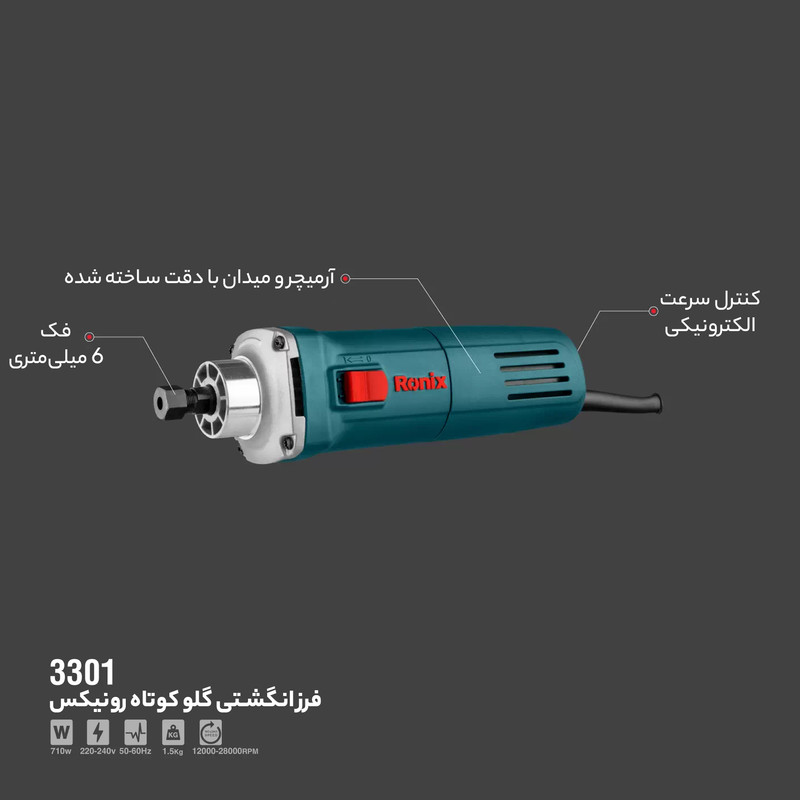 - دارای کلید الکترونیک دیمردار جهت عملکرد آسان - طراحی منحصر بفرد و مدل گلو کوتاه