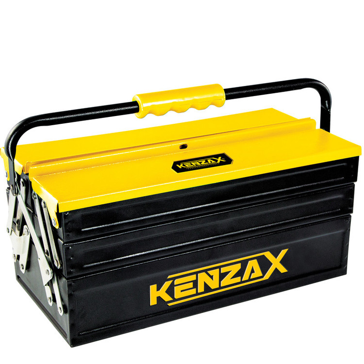 از مهمترین وسایل مورد نیاز در هر منزل و محل کاری، داشتن یک جعبه ابزار مناسب جهت نگهداری، جابه جایی و دسترسی بهتر به ابزار است. جعبه ابزار فلزی «کنزاکس» علیرغم اینکه نمونه مشابه محصولات خارجی ست که در داخل کشور توسط متخصصین شرکت کنزاکس طراحی گشته و در کارخانه ای معتبر به سفارش کنزاکس ساخته میشود. یکی از ویژگیهای این جعبه ابزار استحکام و زیبایی و برخورداری از وزن خالص کم برابر در حدود 5.2 کیلوگرم است. آنچه جعبه ابزار فلزی کنزاکس را از سایر جعبه ابزار های موجود در بازار متفاوت میکند مکانیسم اتوماتیک باز و بسته شدن طبقات توسط دسته و لولاهای مرتبط است . توضیح مکانیسم اتوماتیک : کاربر میتواند با فشار اندکی بر دسته در زوایه قایم بسمت پایین طبقات جعبه را باز و با کشیدن دسته در جهت بالا طبقات را مجددا به حالت بسته(اولیه) برگرداند . از دیگر ویژگیهای جعبه ابزار فلزی کنزاکس مدل KBT-1503 میتوان به تسمه و پرچهای تقویت شده و روان بودن مکانیسم اتوماتیک اشاره نمود ضخامت ورق آهن استفاده شده در ساخت جعبه ابزارهای فلزی کنزاکس برای درب ورق 0.7mm ، بدنه 0.6mm و تسمه 1.5 mm میباشد. . دستگیره حمل از جنس ABS میباشد . از دیگر محاسن این کالا میتوان به پوشش بدنه با رنگ الکترواستایک و تعداد طبقات آن اشاره کرد، برای این محصول سه طبقه در نظر گرفته شده است. سینی مجزا با پنج محفظه جداگانه درون این جعبه ابزار به خصوصیات و کاربردهای آن میافزاید. این سینی به گونهای طراحی شده که علاوه بر برخوردار بودن از یک دسته محکم، پنج جایگاه با ابعاد مختلف را برای شما در نظر گرفته تا هر گونه ابزار با سایزهای متفاوت را در آن دسته بندی کنید.