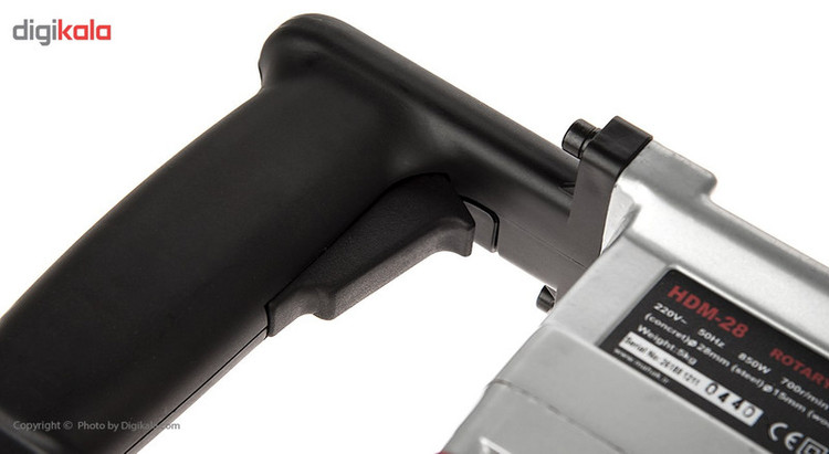 از جمله ابزاری که در صنعت مورد استفاده زیادی قرار میگیرد، دریل بتن کن است. دریل بتن کن (Mahak) «محک» را مشاهده میکنید که تحت عنوان مدل (HDM-28) موجود است. منبع تغذیه این ابزار برق بوده، ولتاژ آن 220 ولت و دارای فناوری ضد لغزش است. اقلام همراه این دریل بتن کن عبارتند از: کیف، دفترچه راهنما، زغال، مته و خطکش. وزن HDM-28 برابر با 5 کیلوگرم است. سرعت گردش آزاد این محصول 700 دور بر دقیقه بوده، نرخ ضربه آن 4000 ضربه در دقیقه و توان آن 850 وات است. حداکثر قطر سوراخکاری در چوب این دستگاه 35، در فلز 15 و در مصالح 25 میلیمتر است. دریل بتن کن محک دارای موتوری بسیار قدرتمند بوده و سازنده آن از بهترین تکنولوژی در ساخت این محصول استفاده کرده است. HDM-28 دارای قابلیت قرار دادن دستگاه در حالت چرخشی و ضربهای را دارد که بنا به عملیاتی که دارید، میتوانید حالت دریل را عوض کنید.