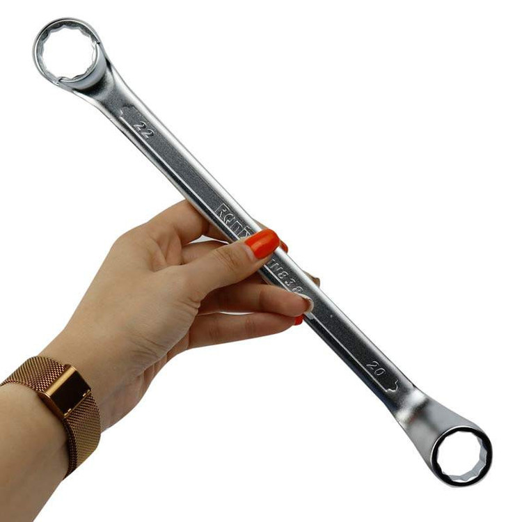 آچار 2 سر رینگی با سایز دهانه 20 و 22 میلی متر مناسب برای شل یا سفت کردن انواع پیچ و مهره بدنه ساخته شده از جنس فولاد کروم-وانادیوم با روکش نیکل ضد خط و خش دارای استاندارد DIN 838