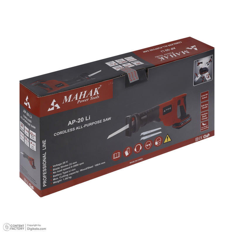 - شارژ سریع یک ساعته - مناسب برای برش رودکا-دیوار کاذب-برش شاخه های درخت - سقف کاذب-تاسیسات و ساختمان –برش چوب در نجاری - برش لوله و اتصالات در صنایع آهنگری و لوه کشی - طراحی ارگونومیک جهت راحتی کاربر - حرکت تیغه 22mm