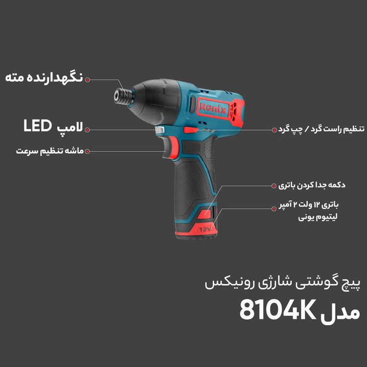 دارای باتری لیتیوم یونی , دارای باتری لیتیومی , دارای باتری نیکل کادمیومی , دارای لامپ LED , قابلیت تعویض باتری , قابلیت کنترل سرعت , نشانگر شارژ باتری