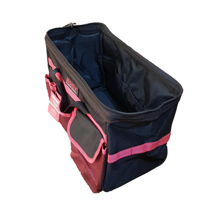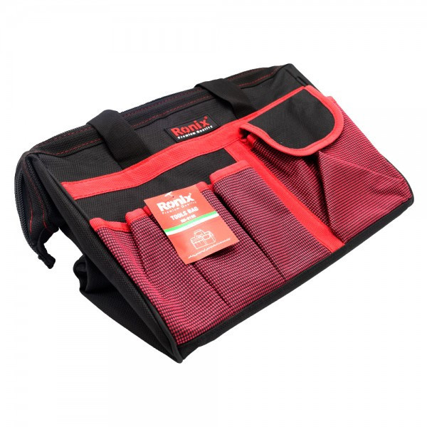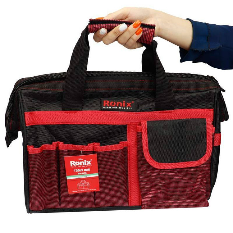 دارای دستگیرهی پارچهای چسبی برای نگهداری راحت کیف/طول دستگیره : 11.5 سانتیمتر/دارای چهار عدد پایهی پلاستیکی و کفی قالبی در کف کیف