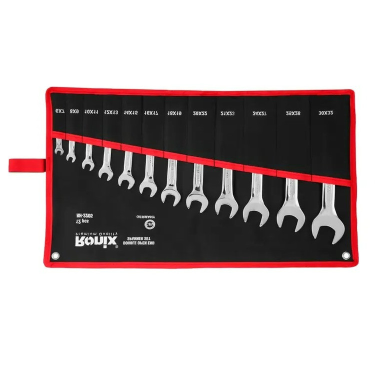 مدل RH-2205 سایزها (6X7,8X9,10X11,12X13,14X15,16X17,18X19,20X22) mm جنس استیل کروم وانادیوم نوع دو سر تخت روکش پولیش شده وزن 2.3 کیلوگرم بسته بندی جعبه رنگی
