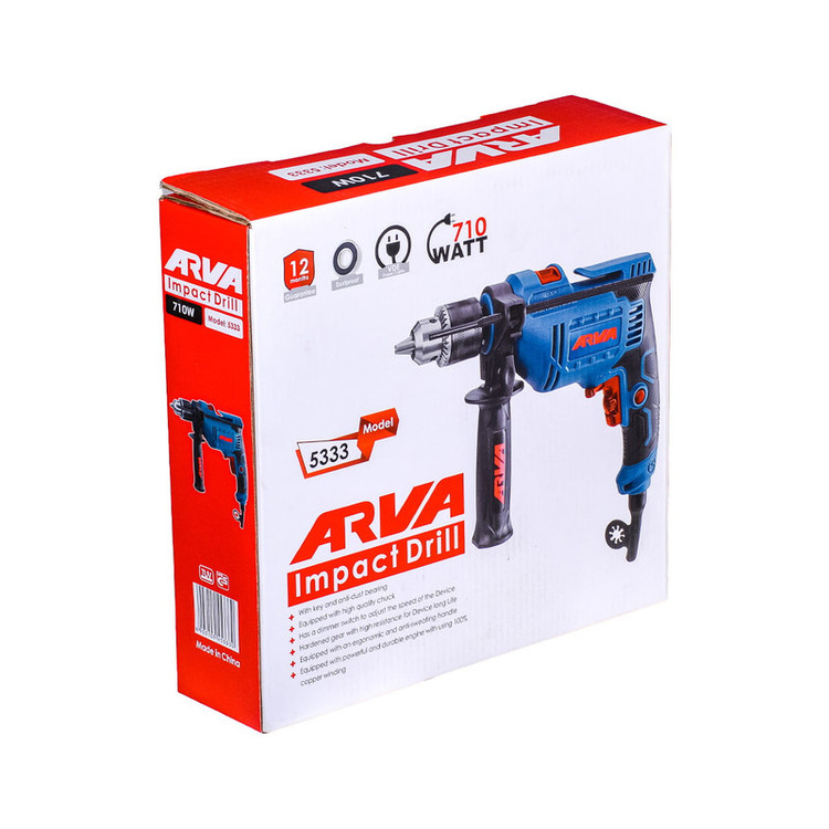 موتور این دستگاه از جنس آلیاژ بادوام است که با قدرتی بالا کار می کند. سیم پیچی داخل آن نیز صد در صد از جنس مس که کمترین میزان اتلاف انرژی را دارد. به همین دلیل گرمای تولید شده درون دستگاه در کمترین میزان ممکن است. توان این دستگاه برابر با ۷۱۰ وات است که جزء دریل های پرقدرت محسوب می شود. سرعت گردش این دریل در حالت بی باری: ۰ تا ۳۳۰۰ دور بر دقیقه است. به وسیله دیمری که روی این دریل نصب شده، می توانید سرعت چرخش دستگاه را تنظیم کنید و به کمک دکمه ای دیگر به نام قفل سوئیچ می توانید آن را قفل کنید و سرعتش را در حالت دلخواه ثابت نگه دارید.