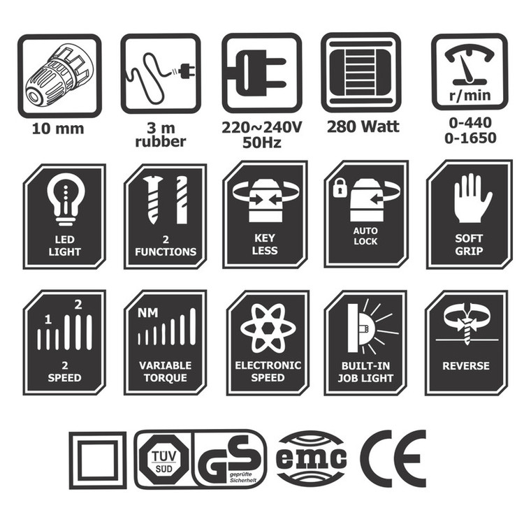 شرکت «کنزاکس» (Knzax) چند مدل پیچگوشتی برقی و شارژی را عرضه میکند که مدل KDD-1280 یکی از این محصولات است. این دستگاه یک پیچگوشتی برقی محسوب میشود. موتور این ابزار 280 وات قدرت دارد و سرعت گردش این موتور بین 0 تا 1650 دوربردقیقه تغییر میکند. با توجه به استفاده از گیربکس صنعتی دو سرعته قابلیت انتخاب گری برای دور کند 0 تا 440 دور بر دقیقه ؛ دور تند 0 تا 1650 دور بر دقیقه در گشتاورهای مختلف متناسب با متریال در اختیار کاربر میگذارد . با تهیه انواع سریهای پیچگوشتی و اتصال آن به دستگاه میتوانید از این ابزار استفاده کنید. قابلیت گردش به هر دو جهت برای باز کردن یا بستن پیچ، برای این محصول در نظر گرفتهشده است. وزن این مدل به حدود 1.1 کیلوگرم میرسد. لازم است بدانید دریل پیچگوشتی کنزاکس مدل KDD-1280 دارای کابلی با طول 3 متری با روکش ضخیم پلاستیکی (Rubber) میباشد . همچنین در بسته بندی KDD-1280 یک جفت ذغال یدکی ئیزارایه شده است با توجه به استفاده از موتور صنعتی طراحی این دستگاه بگونه ایست که جهت تعویض ذغال ها نیاز به باز کردن پوسته دستگاه نخواهید داشت. دریل پیچگوشتی کنزاکس مدل KDD-1280 دارای بلبرینگ حرفه ای و کلید گازی ضد غبار و اهرم انتخاب وضعیت چپگرد و راستگرد مطابق با استاندارد های اروپا است. سیستم گردش چپگرد و راستگرد برای این محصول باعث میشود در حالت پیچگوشتی، بهراحتی پیچها را باز و بسته کنید و در حالت دریل، ورود و خروج مته را با سهولت بیشتری انجام دهید. گشتاور موتور این محصول در 18 حالت مختلف قابل تنظیم بوده و در بیشترین مقدار به 18 نیوتنمتر میرسد. با کمک قابلیت تنظیم گشتاور میتوانید میزان نیروی وارده به سهنظام را تغییر دهید. دسته این محصول با طراحی ارگونومی و روکش TPR نرم جهت جلوگیری از خستگی و لغزش و مقاوم در برابر ضربات حین کار تولید شده است ؛ این محصول به چراغ ال ای دی در انتهای دسته مجهز شده است که با تابش بروی سطح کار انجام فعل را در محیط های کم نور را نیز مقدور مینماید ؛ همچنین این محصول به آویز کمری استیل جهت راحتی کاربر حین کار مجهز گشته است. سه نظام این کالا از مدل اتوماتیک دو تکه بوده ؛ ظرفیت آن 10 میلیمتر است ؛ ظرفیت سوراخکاری آن در چوب 26 میلیمتر و در استیل 10 میلیمتر میباشد .