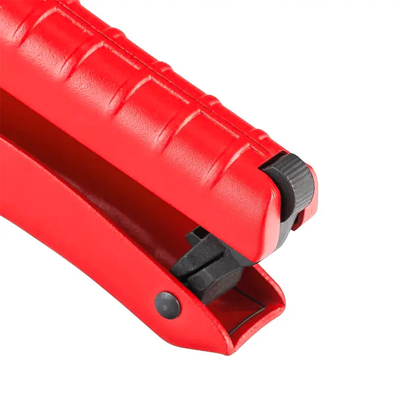 قیچی لولهبر مدل RH-3203 یک انتخاب مناسب برای تهیه این ابزار و برش لولههای پلاستیکی محسوب میشود. این مدل ازجملهی محصولات شرکت «رونیکس» (Ronix) به شمار میآید. این شرکت ابزار را در گونههای مختلفی تولید کرده که این قیچی یکی از آنها است. این مدل دارای تیغهای برنده دارد که برای برش انواع لولههای پلیمری به کار میرود. این مدل با ابعاد 105 × 225 سانتیمتر ساخته میشود. تیغههای این قیچی از فولاد ضدزنگ ساختهشده و به کمک آن میتوانید لولههای تا قطر 42 میلیمتر را برش دهید. برای استفاده از قیچی لولهبر مهارت خاصی لازم نیست و بهراحتی میتوان از آن استفاده کرد. شرکتهای تولیدکننده این مدل برای حفاظت از این وسیله، ضامن یا قفلی برای بسته ماندن تیغه در نظر گرفته است. از این قیچی در لولهکشی (لولههای پلیمری) استفادهی زیادی میکنند. این محصول حجم کمی از جعبهی ابزار را اشغال میکند. برش لوله پلاستیکی (PVC) کاری است که اگر با اره دستی انجام شود، چندان راحت نیست. در بعضی مواقع هم امکان استفاده از اره دستی وجود ندارد؛ ازجملهی این دلایل میتوان به فضای کاری کم اشاره کرد. استفاده از دستگاه برش برقی هم برای این کار چندان منطقی و مقرونبهصرفه به نظر نمیرسد. در این صورت استفاده از قیچیهای لولهبر یکی از گزینههای برای رفع مشکل و انجام دادن کار است. مدل RH-3203 یکی از قیچیهای لولهبری است که شرکت نووا تولید کرده است. به کمک این قیچی و تیغههای فولادی آن، قادر هستید لولههای پلیمری را تا قطر 42 میلیمتر برش دهید.