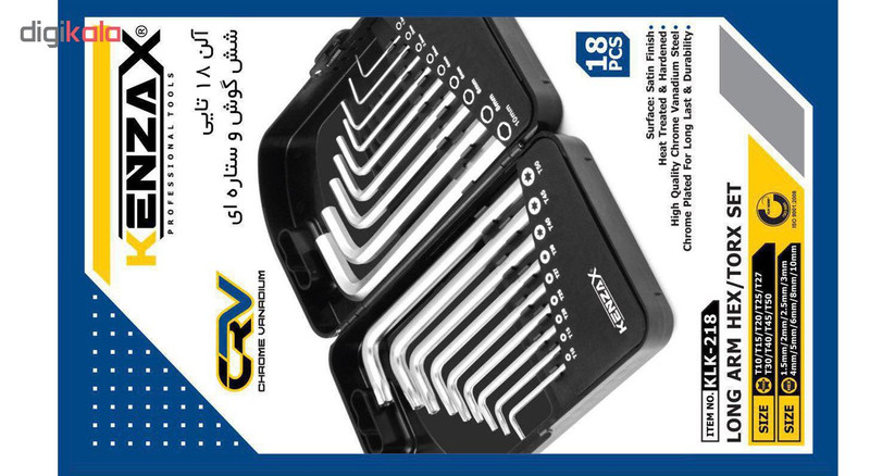 مجموعه 18 عددی آچار آلن و ستاره ای بلند کنزاکس مدل KLK-218